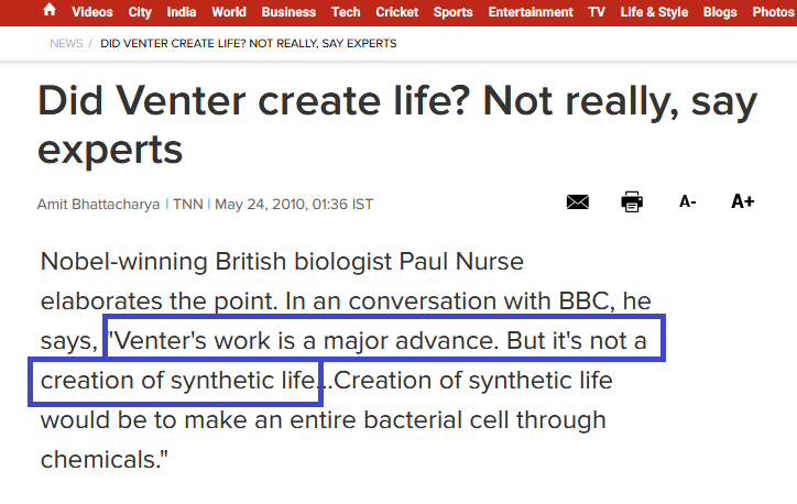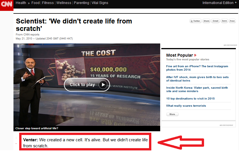 والأغرب مما سبق أن كريج فنتر بنفسه قال: "إننا لم نخلق حياة من الصفر We didn’t create life from scratch".