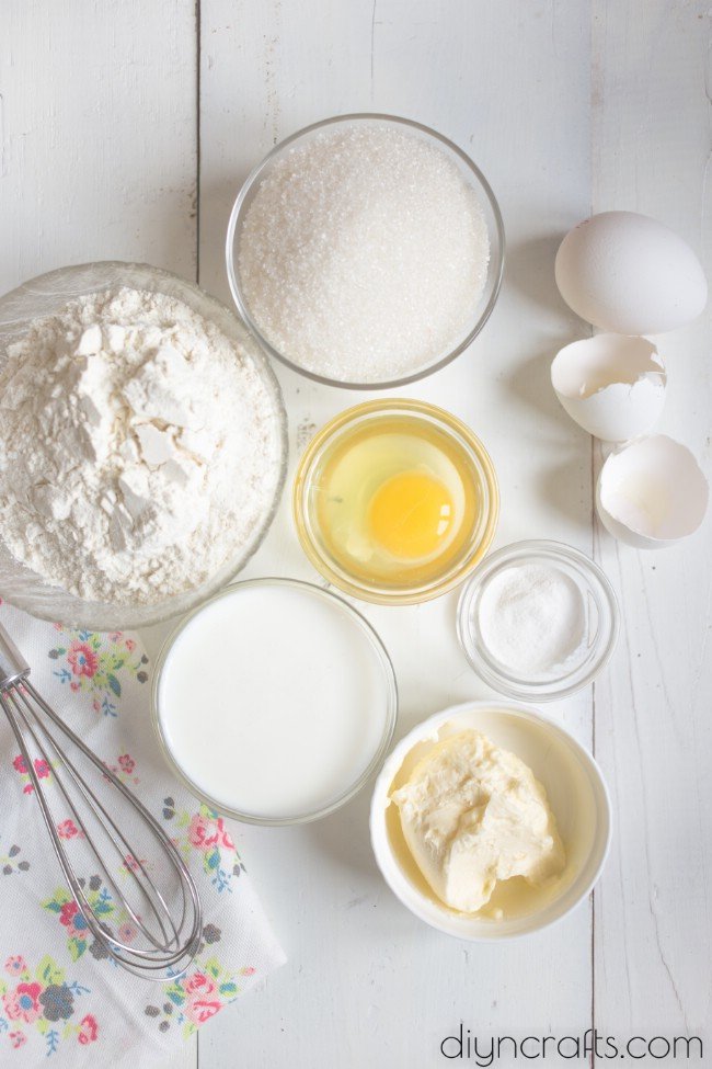 داخل المطبخ يوجد: دقيق وسُكر وزَيْت وبيض.