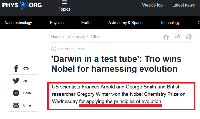 بالفعل التجربة التي حازت على جائزة نوبل في الكيمياء للعام الماضي كانت بعنوان: "نظرية التطوُّر في معمل" حيث قام العلماء بتقليد نظرية التطوُّر داخل معمل؛ فكيف حصل هذا وماذا كانت النتيجة؟