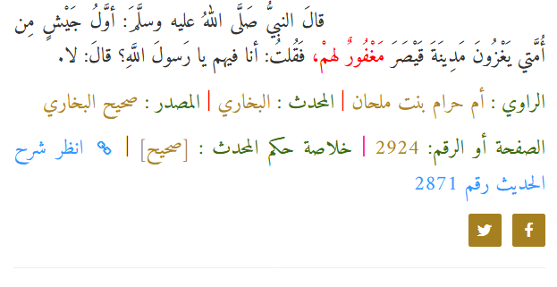لقد أُعطيت لقديسي العلي، وقد بشَّر النبي محمد صلى الله عليه وسلم بفتح القسطنطينية؛ وبشَّر أول جيشٍ يغزوها بأنهم مغفورٌ لهم: