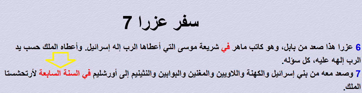 فعزرا تحرَّك في السنة السابعة من حُكم الملك أرتَحْشَشتا:
