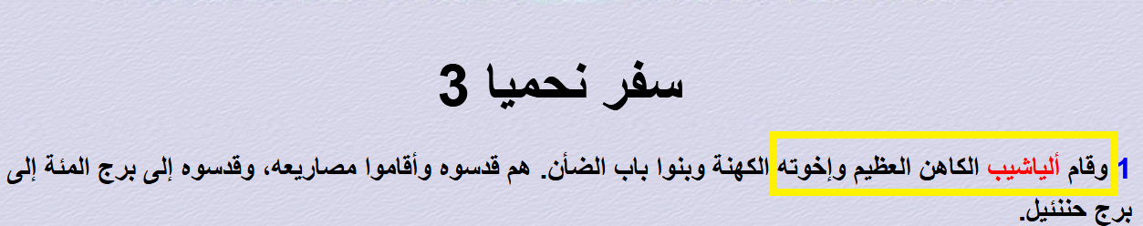 والأعجب من كل ذلك أن نَحميَا كان في عصر رئيس الكهنة أَلِياشِيب: