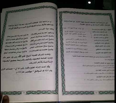 ولا تتمُّ طباعة المصحف حتى الساعة في أيَّة دولة إسلامية إلا بعد أن يقوم بمراجعته أهلُ الأسانيد ممَّن تلقَوهُ شفاهةً من فم النبي صلى الله عليه وسلم .