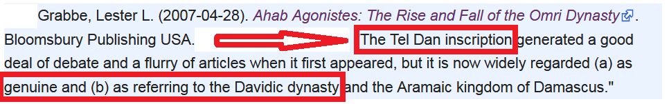 وهناك اليوم شبه اتفاق بين المحققين والباحثين على أنَّ هذا النقش يتحدَّث بصورة واضحة عن مملكة داود عليه السلام .