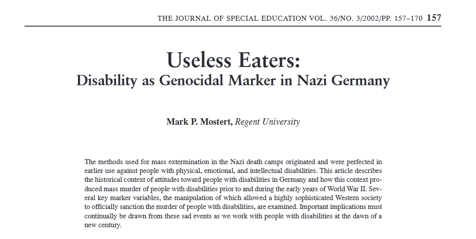 فهذه الأفواه التي تأكل ولا تعمل Useless Eaters يجب التخلُّص منها سريعًا في العالم الإلحادي المادي، وقد شمل قرار القتل: كبار السن، والمرضى، والمعاقين.