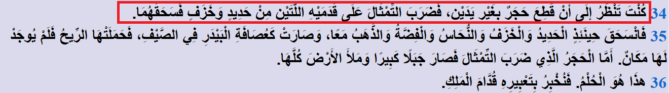 الحَجَر الذي سيهدم التمثال... الحجر الذي سيسحق الممالك الأربع الظالمة الوثنية.