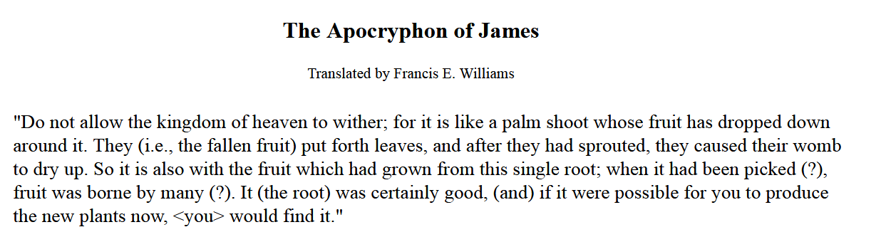 لو نظرنا إلى إنجيل جيمس سنجد وصف صحابة النبي صلى الله عليه وسلم : {وَمَثَلُهُمْ فِي الْإِنْجِيلِ كَزَرْعٍ أَخْرَجَ شَطْأَهُ فَآزَرَهُ فَاسْتَغْلَظَ فَاسْتَوَى عَلَى سُوقِهِ} [سورة الفتح: 29].