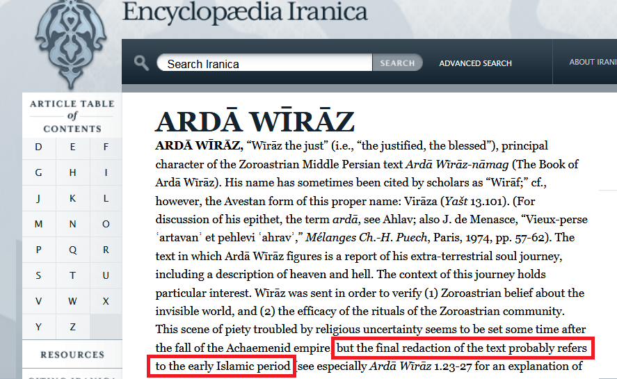 وفي الواقع مَن دَرس ونظر في الزرادشتية سيكتشف أنَّ الزرادشتية هي التي نقلت قصة الإسراء والمعراج من الإسلام.