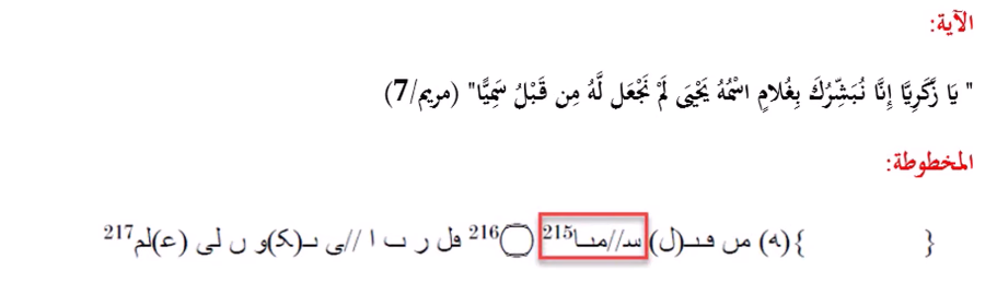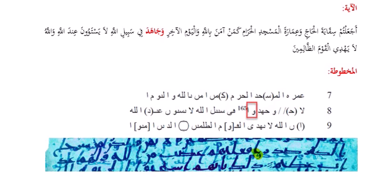 فحشر الحرفين: الواو والألف بصعوبة في المسافة الصغيرة بين الكلمتين كما في الصورة بالأسفل من المخطوطة المكتشَفة.