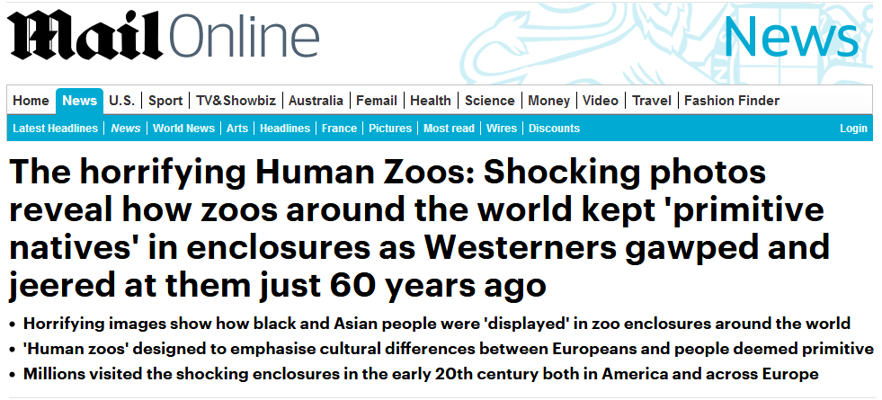 وإدخال البشر أقفاص الحيوانات باعتبارهم أعراقًا أدنى هذه حقيقة تاريخية.