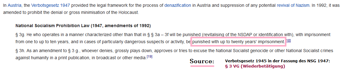 وفي النمسا يتمُّ السجن عشرون عامًا لمن يُشكّك في أعداد اليهود الذين أحرقهم النازي.