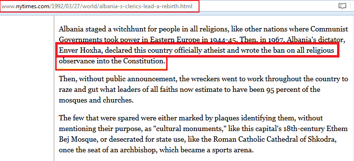 قام أنور خوجة رسميًّا بمنع كل الديانات من بلده، وحاربها بعنفٍ شديدٍ.
